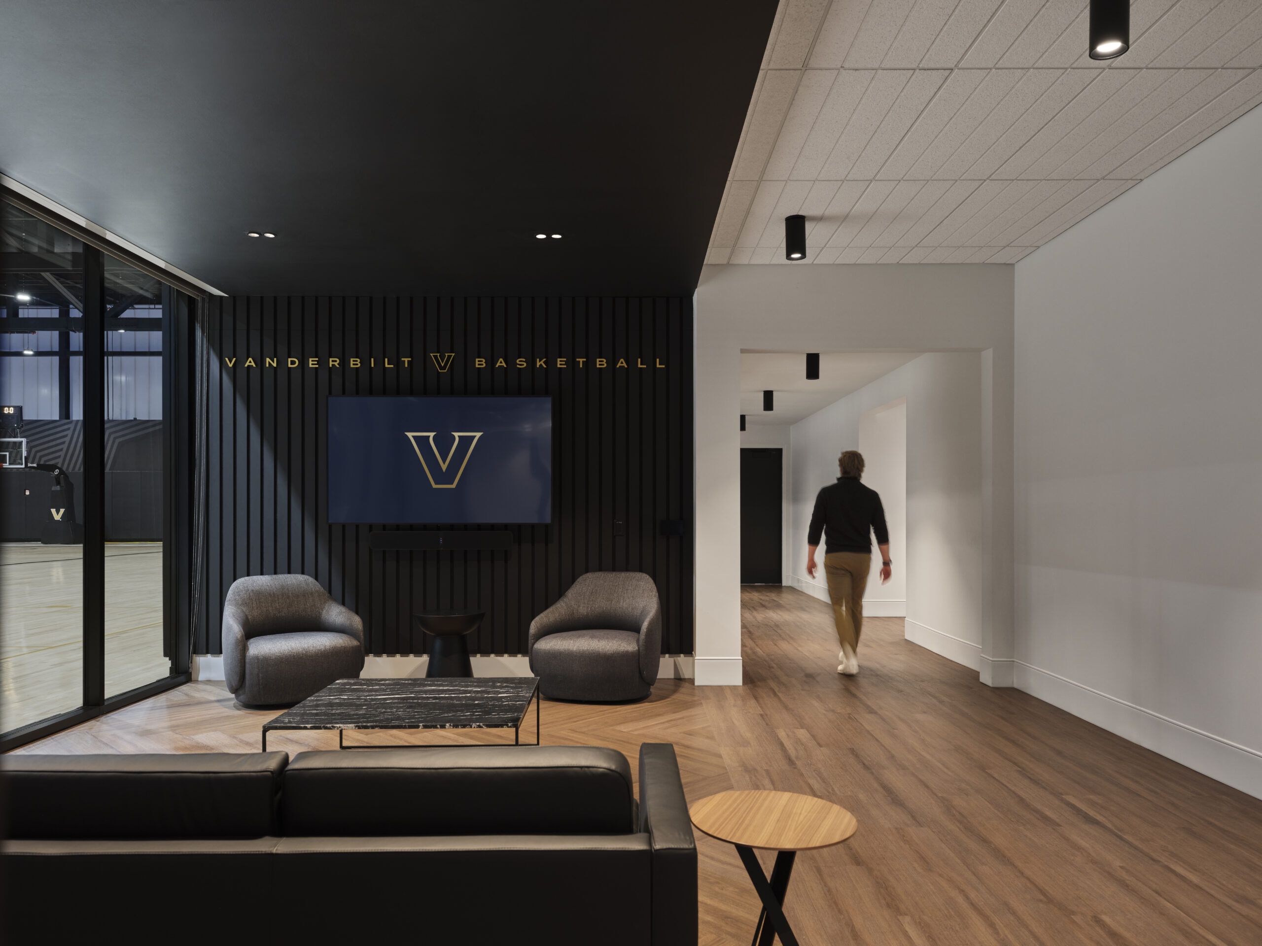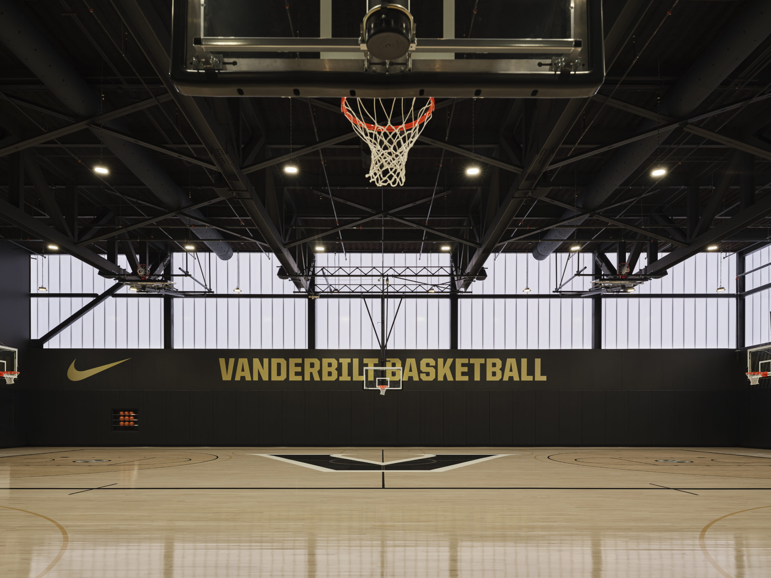 The new multi-story men’s and women’s basketball operations center features two practice gyms covering more than 90,000 SF; student-athlete facilities such as locker rooms, lounges, weight room, and training facility; and easy access to Memorial Gymnasium.
